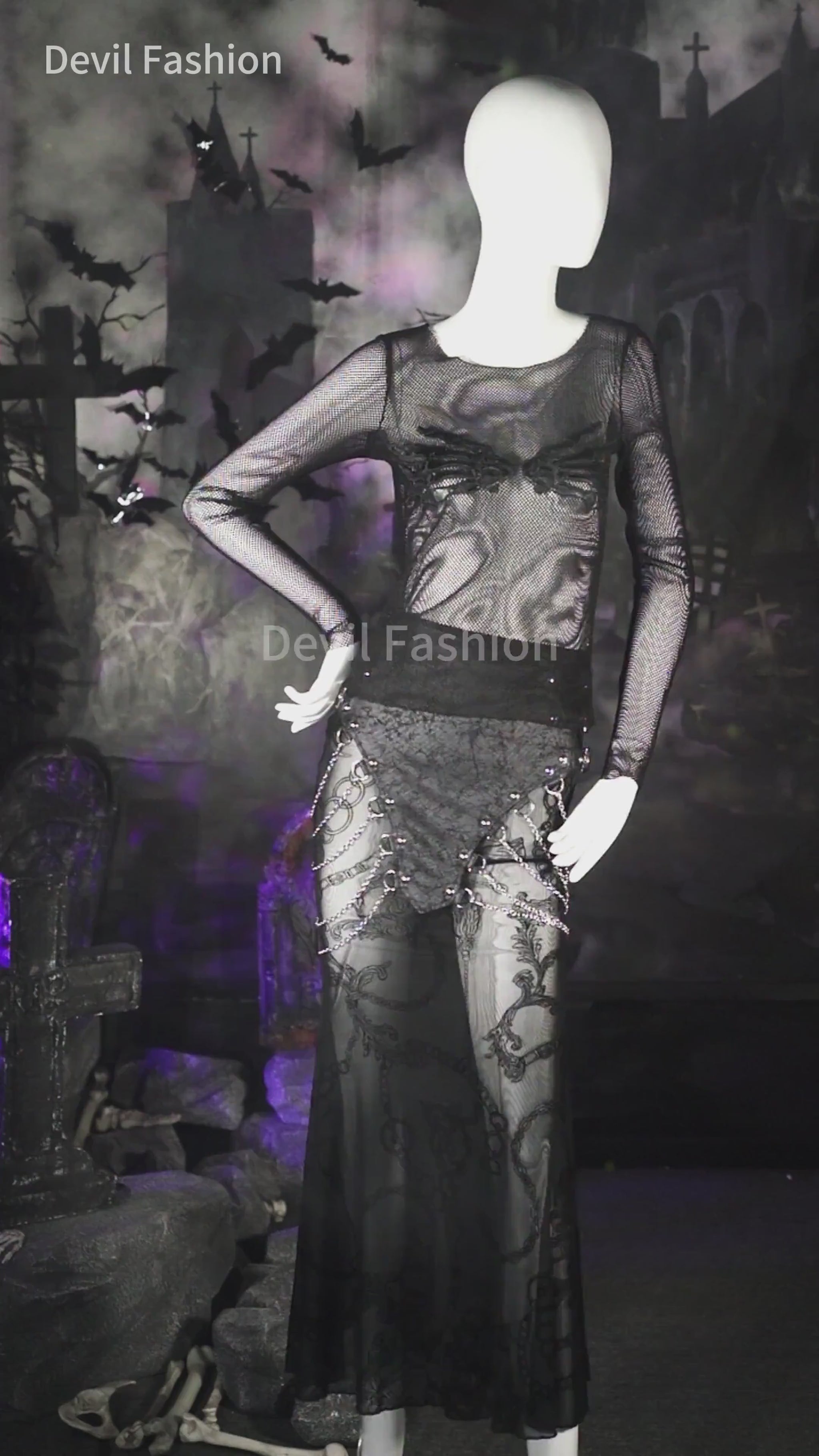 Women's Gothic Long Dress with transparent Bottom / Black Sexy Backless Dresses with Embroidery