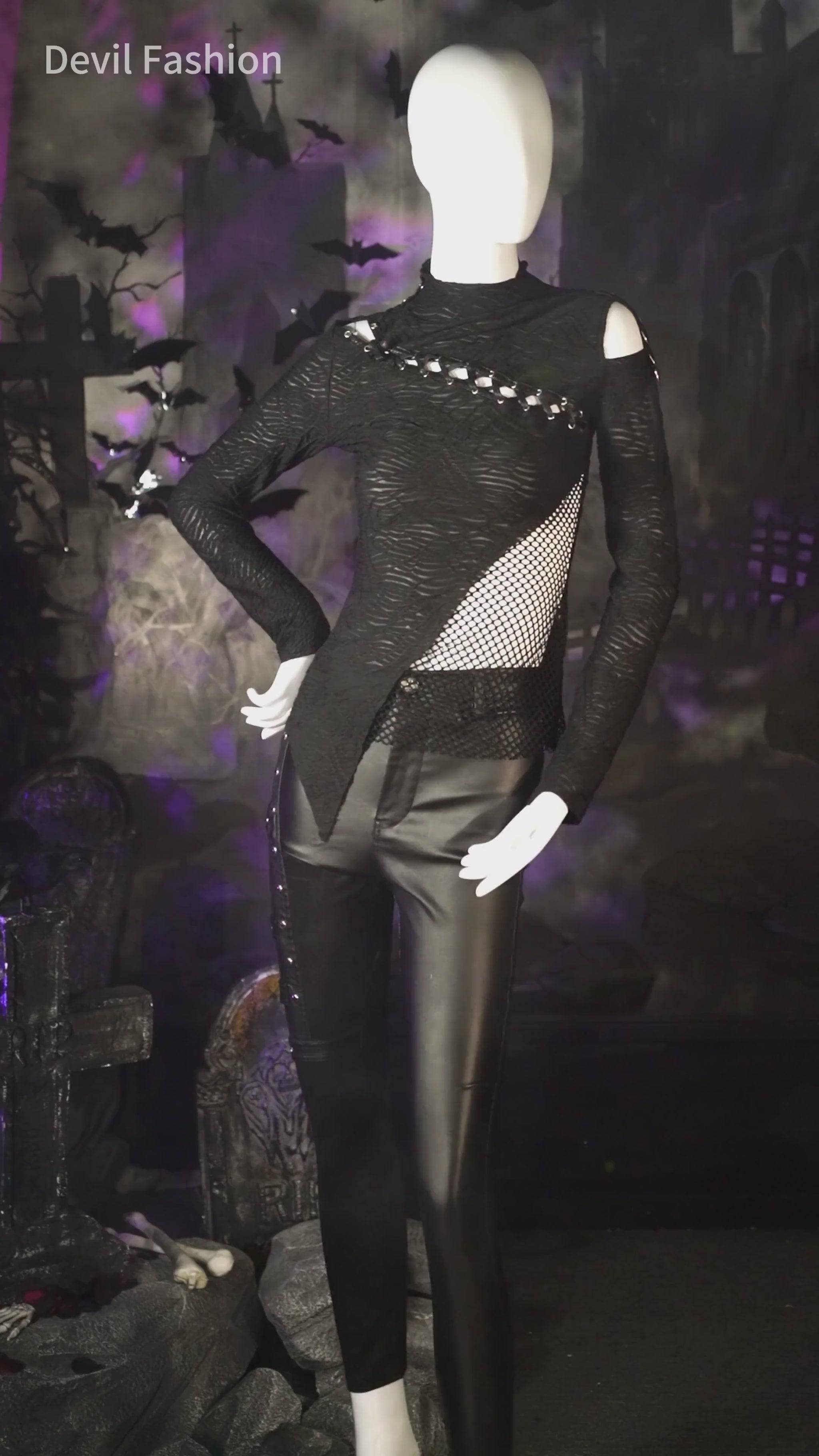 Women's Gothic Patchwork Top with Irregular Hem and Half-High Neck