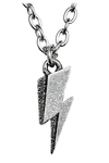 Inspired by Bowie's iconic 1970s lightning bolt aesthetic, this antique-finish pewter pendant celebrates rock legend style. Features a sleek flash charm suspended on a 21" trace chain. A must-have for music fans, glam rock enthusiasts, and bold fashion statements alike. Lightweight, edgy, and unmistakably electrifying.