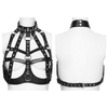 Made of eco-friendly artificial leather and metal, this punk-inspired bustier features a classic collar fixed with snap buttons. Personalized skull studs, D-ring buckle chains, and eyelets highlight the rock-punk vibe. The chest straps cross and interweave, creating a body-sculpting effect that elevates any alternative outfit with edgy sophistication.
