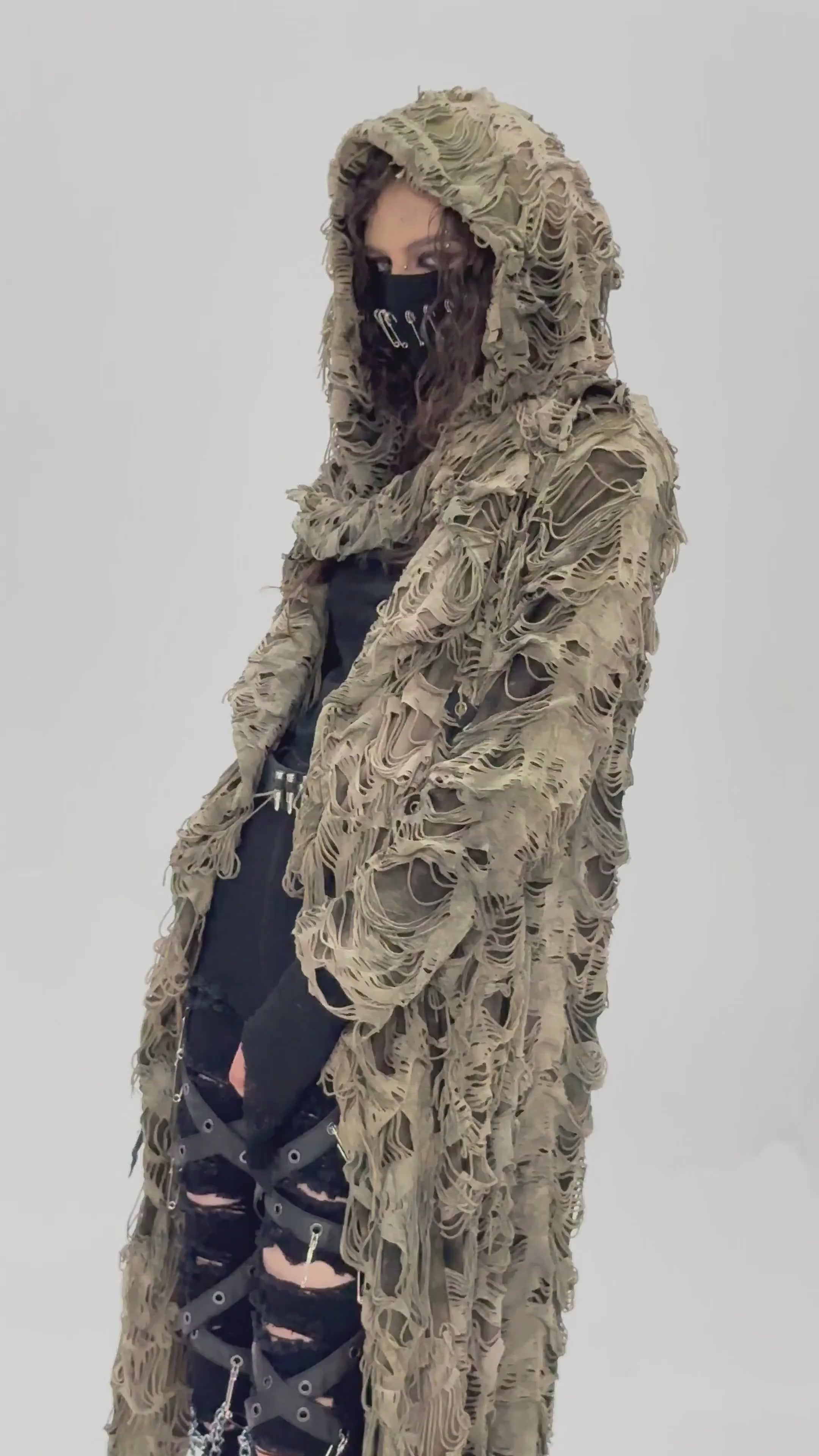 Shredded Longline Cape for Alternative Streetwear.