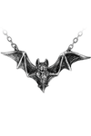 A Vampire bat of Balkan severity and proportions. This substantial-sized gothic jewellery piece features a pewter modeled flying bat with raised and outstretched wings. Perfect for fans of alternative and gothic styles, this Om Strygia pendant adds bold, dark elegance to any outfit, combining classic symbolism with striking craftsmanship.