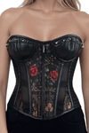 Gothic Floral Overbust Corset with Red Roses and Studs
