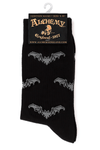 You'll go batty for these black gothic socks featuring a repeating grey bat design. Crafted from breathable cotton, they offer a bold way to show off your nocturnal side. A must-have for fans of alternative fashion, dark aesthetics, and Halloween vibes all year round. Perfect for gifting or adding a quirky twist to your wardrobe.