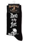 Let your socks speak for you—these Dead On My Feet slogan socks are perfect for days when you’re over it. Featuring the bold gothic lettering and Alchemy’s signature skull and rose logo, they bring dark humor and alternative style to your outfit. A statement piece for gothic and rock fashion lovers.