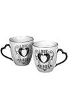 These beautiful Love Birds couple mugs feature original Alchemy raven art forming a heart, the ultimate symbol of dark romance. Each mug has a unique heart-shaped handle and bold black and white design. This couple mug set is the perfect gothic gift for weddings, anniversaries or to surprise your soulmate. Designed by Alchemy in England, crafted from fine bone china for true lovers of alternative style.