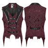 This men's gothic waistcoat is made of rich jacquard fabric and textured leather for a dramatic statement. It features a bat-shaped hem and eyelets along the edge of the lapel, adding a darkly elegant touch. The front showcases gorgeous buckles that highlight nobility and vintage flair. Perfect for gothic events, steampunk outfits, or alternative formal wear, this brocade vest stands out in any dark wardrobe.
