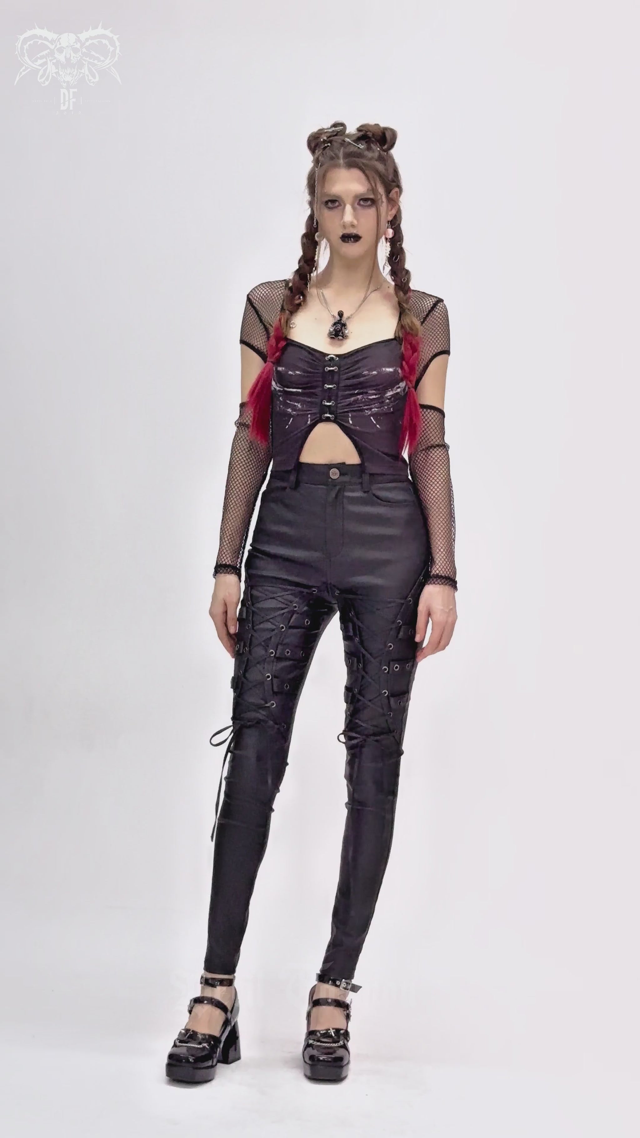 Dive into a wide variety of alternative fashion styles with our selection of women's pants and trousers represented in all sorts of ways, like slim-fit jeans, skinny jeans, and boot cuts. Pick from a range of black gothic pants, checkered grunge style, or leather trousers that make you feel like a super cool Rock Star. Turn heads at the pub when you walk in wearing shiny latex pants. Team up these items of clothing with a biker jacket and band shirts. Add a pair of black high-ankle boots to complement the rugged look. Oh, yeah! Now you look absolutely stunning. Get the edgy look right with matching statement jewellery and accessories. This is an awesome ensemble if you want to set yourself apart from a crowd while commuting or walking with friends down the street.