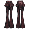 Step into dark elegance with these gothic wine red lace flared pants featuring a layered skirt overlay. Made of sparkling printed knitted fabric, they showcase gorgeous shirred panels with delicate lace trim that enhances the silhouette. The dramatic flared legs elongate your shape while practical pockets add function. A statement piece for alternative, steampunk, and goth-inspired looks.
