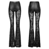 Crafted from elastic cross-patterned flocking mesh and glossy knitted leather, these pants feature a spliced upper in stretchy knit and lower mesh panels for layered visual contrast. The cross embroidery on the side enhances the dark gothic appeal. Note: Flocking mesh may shed fibers slightly with wear.