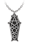 Step into the world of mysticism with the Hex Coffin Pendant. Crafted from antiqued pewter, this captivating necklace features intricate symbols of power and protection, including a pentagram and triple moon. The coffin-inspired silhouette makes it a must-have for lovers of the macabre and those who express their individuality with gothic elegance.