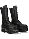 Black gothic knee-high boots with a bold punk silhouette, lace up front, and side zip closure. Built on a sculpted platform sole with industrial detailing, this statement pair channels alternative, rock, and futuristic streetwear energy. The sleek upper and heavy tread base create a fierce finish for concerts, festival dressing, night outings, editorial looks, and standout everyday styling.