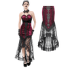 Dieser gotische Rock kombiniert burgunderroten, zerknitterten Samt mit aufwendiger schwarzer Spitze und viktorianischer Stickerei. Der High-Low-Saum und der asymmetrische Spitzenschleier sorgen für eine dramatische Silhouette, während die Korsettschnürung am Rücken eine schlanke Passform gewährleistet. Ideal für Vampir-Cosplay, gotische Veranstaltungen und alternative Mode-Looks mit dunklen, romantischen Vibes.