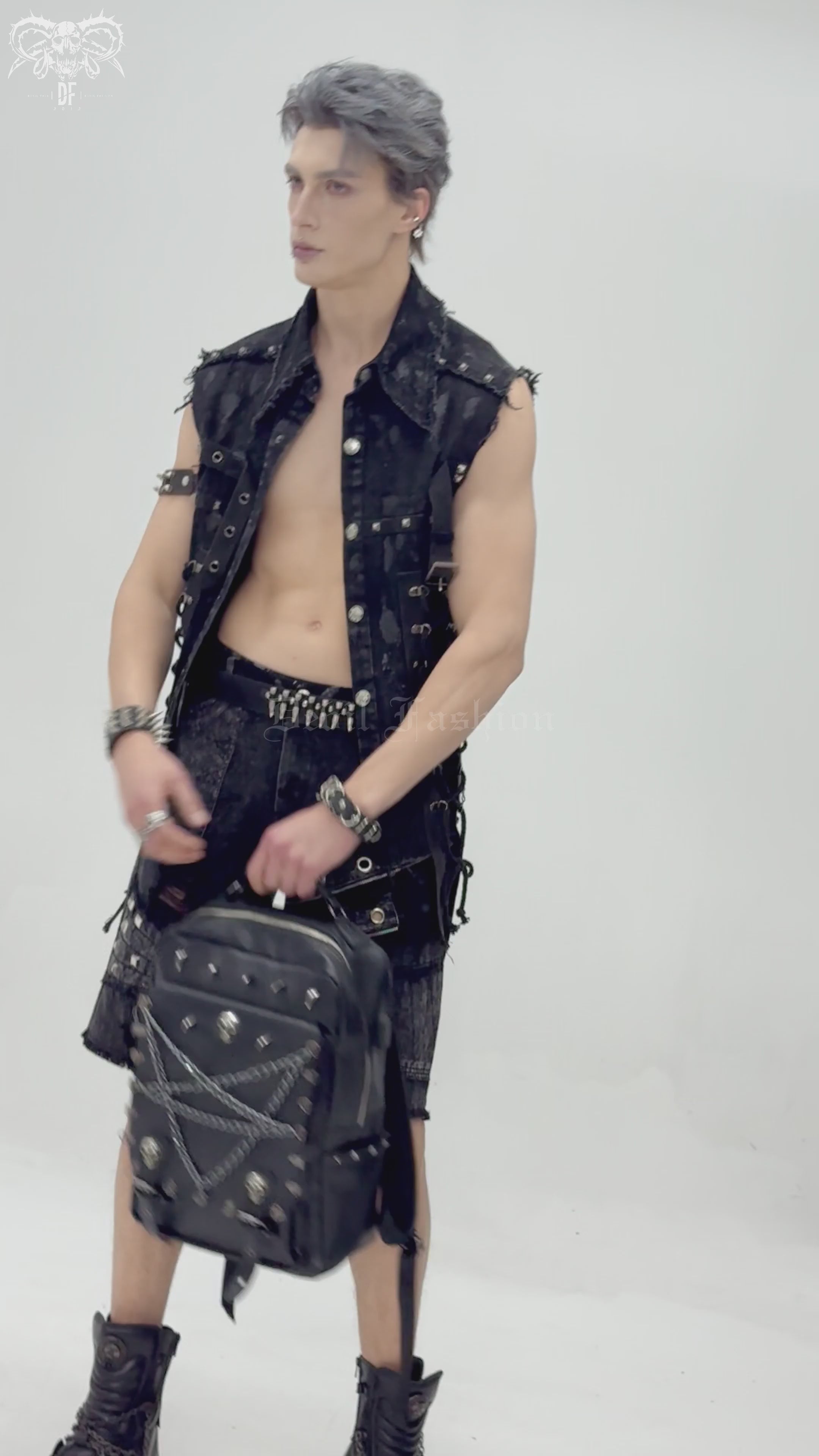 Entfesseln Sie Ihren dunklen Stil mit diesem gotischen Rucksack, der auffällige Totenkopfakzente, Kettendetails und markante Nieten bietet. Mit mehreren Fächern gestaltet, bietet er reichlich Stauraum für tägliche Notwendigkeiten und bewahrt dabei eine kühne Ästhetik. Für Langlebigkeit und Funktionalität gefertigt, ist diese Tasche perfekt für Liebhaber alternativer Mode, die ein Statement setzen möchten.