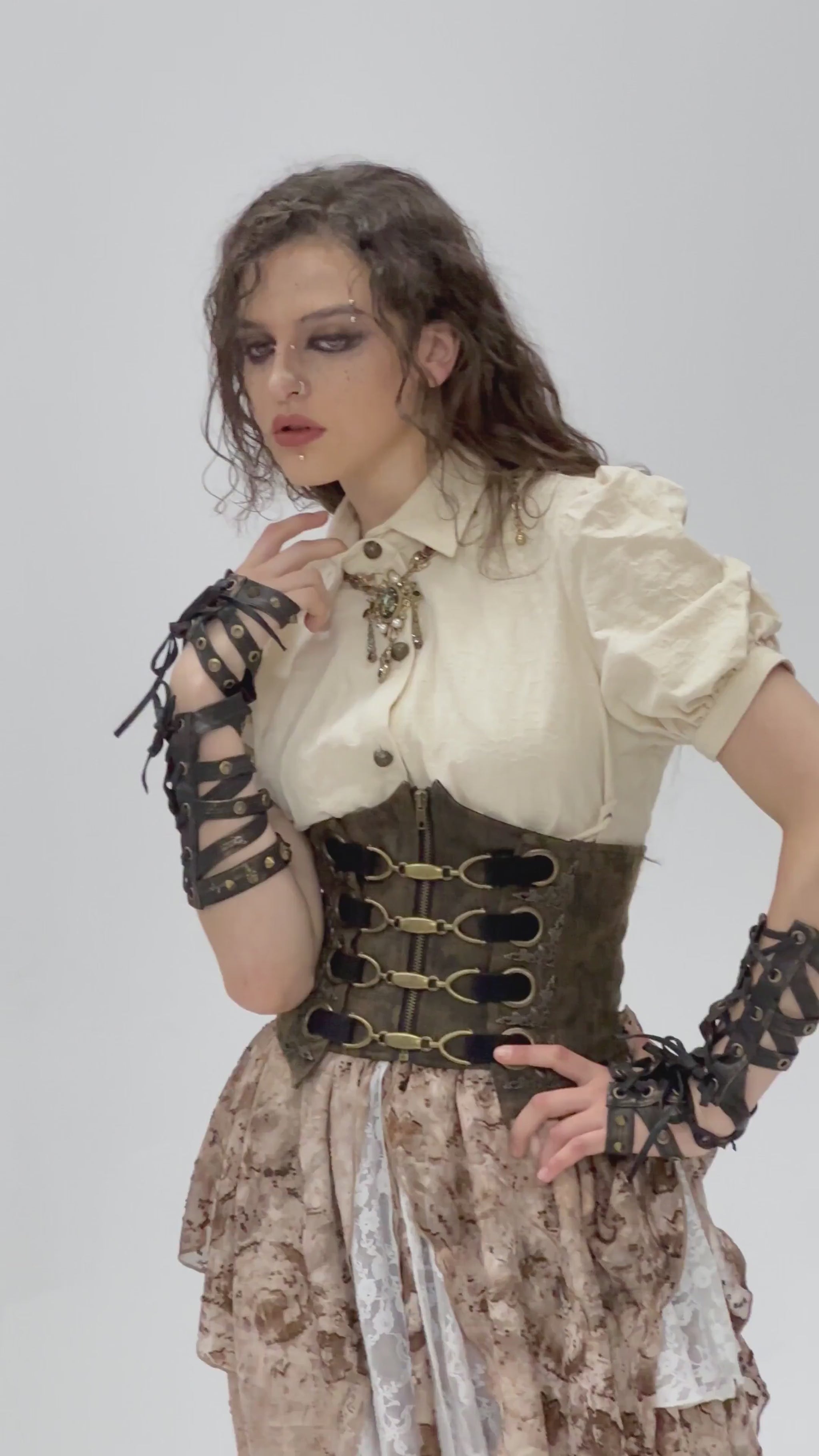 - Steampunk-Korsettgürtel: Machen Sie sich bereit für das Abenteuer mit einem Steampunk-Korsettgürtel. Mit metallischen Akzenten, Zahnraddetails und satten Braun- oder Schwarztönen versetzen diese Gürtel Sie in eine andere Zeit. Zeigen Sie den Erfinder in Ihnen aus, indem Sie sie mit fließenden Blusen und hoch taillierten Hosen kombinieren. Taillierte Hosen für eine raffinierte Ästhetik, ein Steampunk-inspirierter Rock und Stiefel für einen robusteren Look oder ein figurbetontes Oberteil und eine Schutzbrille für einen Hauch verspielter Laune.