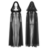 Tauchen Sie ein in die dunkle Romantik mit diesem durchsichtigen, gotischen Cape aus zartem Netz. Das Kapuzen-Design mit schulterfreiem Schnitt schafft eine ätherische Silhouette, während der Knopf am Ausschnitt einen raffinierten Akzent aus der alten Welt hinzufügt. Der plüschige Pelzbesatz vertieft die geheimnisvolle Stimmung, und das bestickte Rückendetail bringt romantisches Drama in rituelle Looks, fantasievolle Stylings und auffällige Schichtungen über Kleidern oder Korsetts für dunkle Anziehungskraft heute.