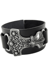 Kanalisiere die Macht der Götter mit diesem von der nordischen Mythologie inspirierten Armband. Mit einem großen Mjolnir-Anhänger aus Zinn - dem legendären Hammer von Thor - auf einem breiten schwarzen Lederband. Ideal für moderne Wikinger, Metalheads und Mythenliebhaber, lässt sich dieses verstellbare Armband mit einer Schnalle schließen und setzt ein starkes Statement für jeden gotischen oder heidnischen Look.