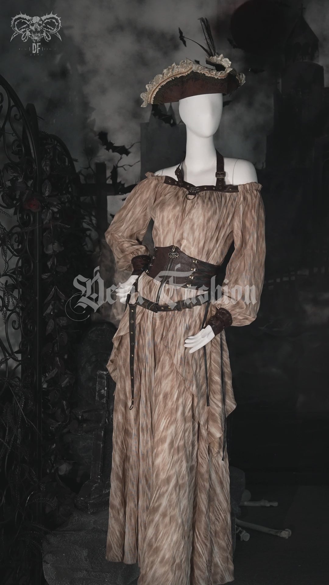 Werten Sie Ihre Gothic- und Steampunk-Garderobe mit diesem exquisiten viktorianischen Steampunk-Dreispitz auf. Diese aus aufwendiger Spitze und weichem Strickstoff gefertigte Mütze strahlt eine romantische und dynamische, düstere Atmosphäre aus. Die Vorderseite ist mit Falten und nietenbesetztem Spitzenband verziert, während die Rückseite für eine perfekte Passform mit einem verstellbaren Kordelzug ausgestattet ist. Das elegante Design wird durch eine auffällige Pfauenfeder und einen detaillierten Spitzenbesatz abgerundet und macht es zu einem herausragenden Accessoire für jede Gothic-Göttin.