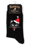 Feiern Sie die Saison mit diesen Black Gothic Cat Christmas Socks von Alchemy England. Mit einem auffälligen festlichen Katzendesign mit Weihnachtsmütze und Totenkopf-Detail sind sie perfekt für gotische Feiertagsstimmung. Ideal als einzigartiges Weihnachtsgeschenk oder als stilvolle Belohnung für sich selbst. Fügen Sie Ihrer saisonalen Garderobe eine spielerische dunkle Note hinzu.