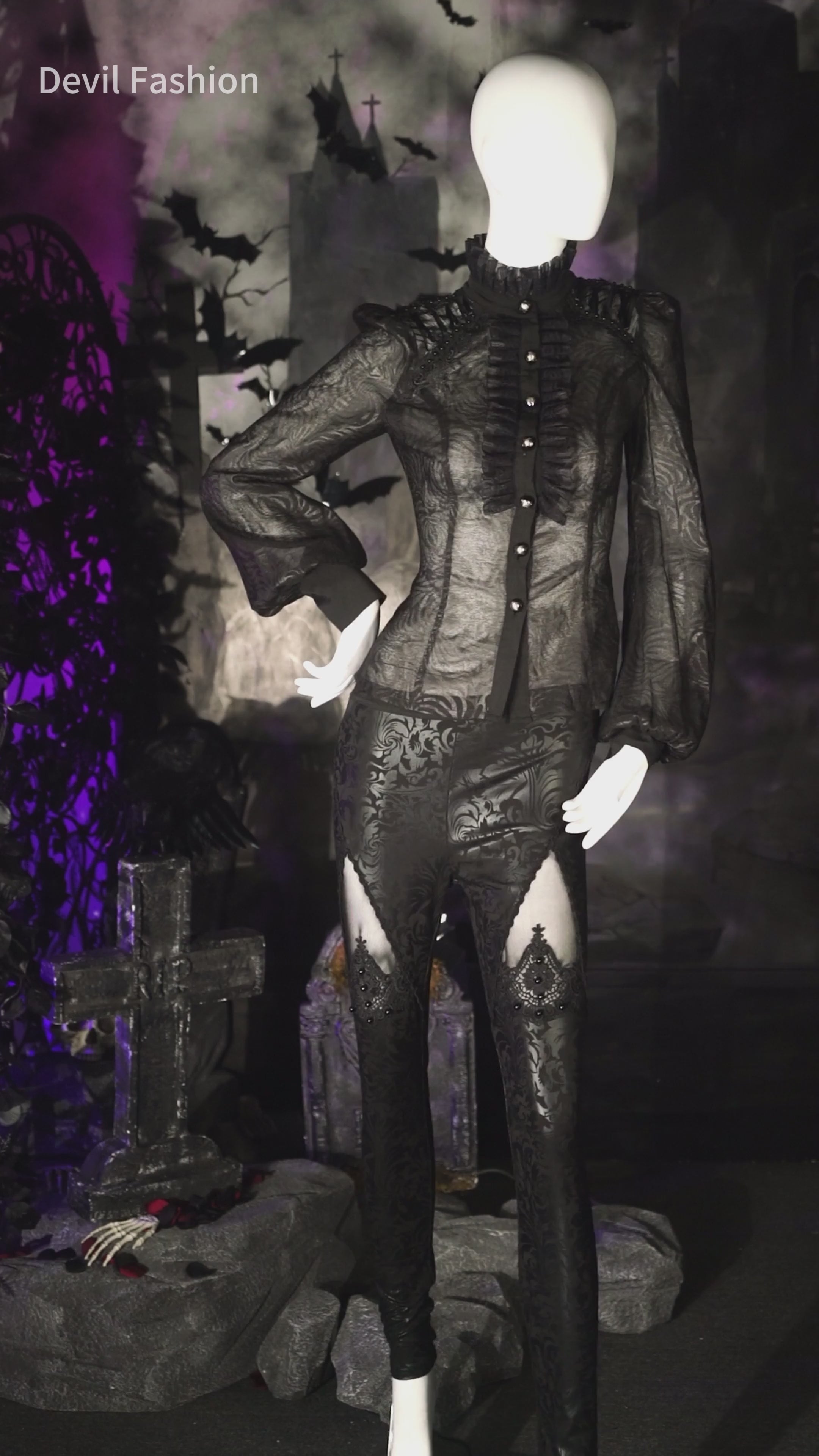 Gothic Embroidered Splice Leggings with Decorated Beads Zum Inhalt springen