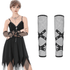 Verleihen Sie Ihrem Look mit diesen gothischen Netzarmwärmern das gewisse Etwas. Dehnbare Netzärmel umschließen den Unterarm und sind mit weichen elastischen Bündchen für einen sicheren Sitz versehen. Umwickelte Riemenakzente mit Metallösen verleihen eine punkige Attitüde und lassen Sie den Look nach Ihrem Geschmack stylen. Tragen Sie sie über nackter Haut oder über Tops für Clubnächte, Konzerte, Cosplay und Festival-Outfits. Kombinieren Sie sie mit Korsetts, Röcken und Halsbändern für sofortiges Drama.