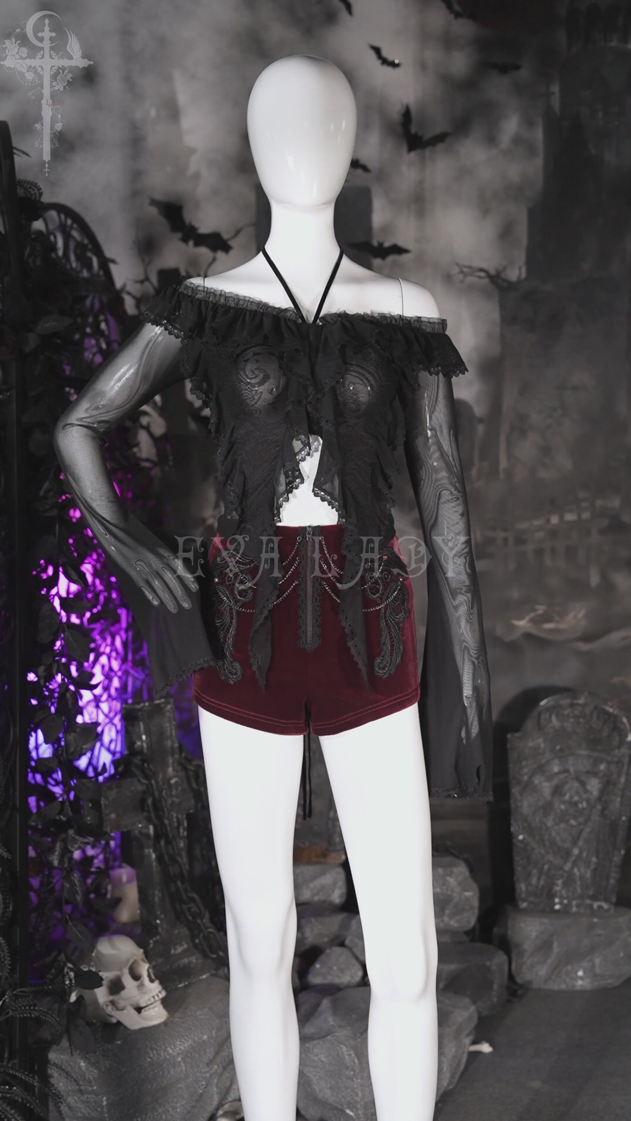 Gothic-Damen-Rüschenoberteil mit transparenten Ärmeln Zum Inhalt springen