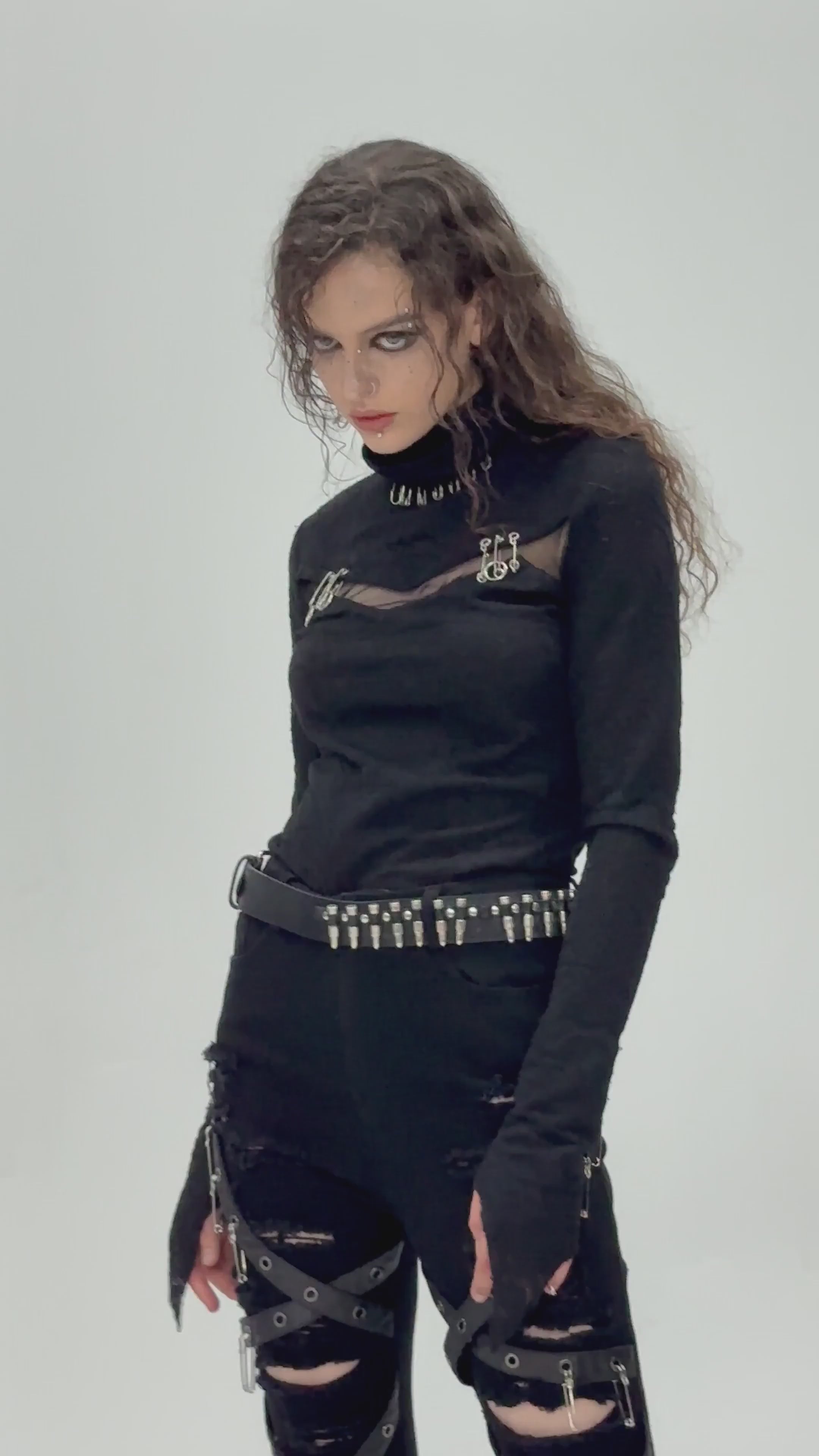 Edgy Gothic Pants with Distressed Details and Hardware.