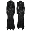 Crafted from stretch ragged knit fabric and cracked leather, this gothic long dress features an asymmetric split hollow design. Different textured fabrics create a decadent layered effect, while strips and semicircular rivets highlight the waistline. The ragged detailing and flowing cut make it a striking piece for punk and gothic style lovers.