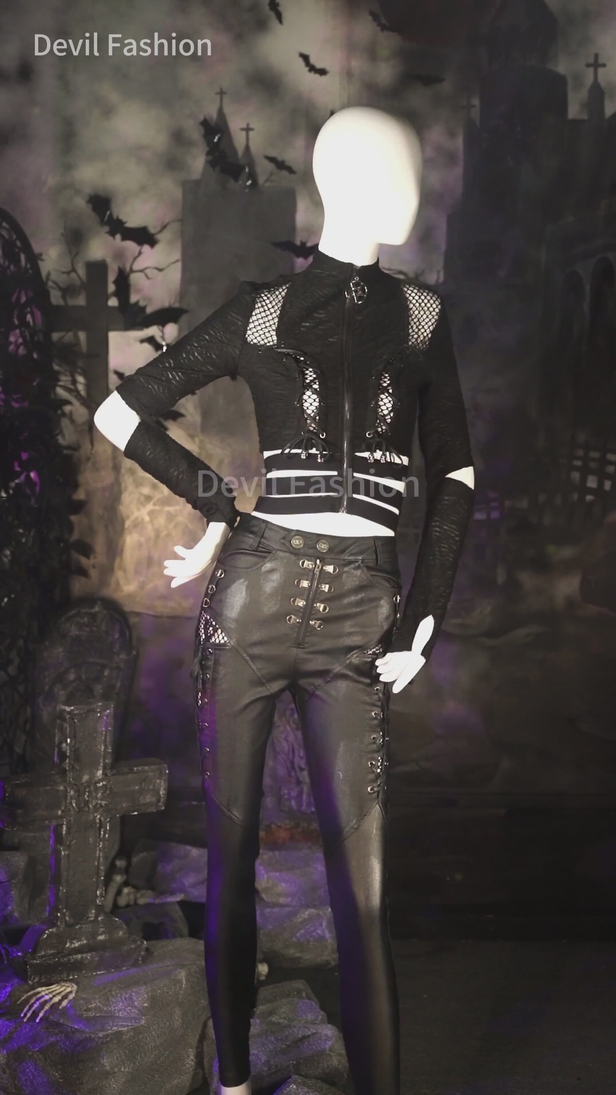 Black Gothic Twill Pants with Mesh and Rivet Detailing