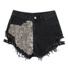 These cool shorts are a must for parties and concerts! A mix of different decoration elements make them super unique - ripped bottom with right side being covered with shiny elements together create an outstanding dope look.
