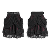 Step into alternative fashion with this gothic lace skirt featuring layered black ruffles, intricate lace trim, and a rich red underlayer. Designed with a Victorian-inspired silhouette, it includes a statement belt with ornate details and a flattering high waist. Perfect for gothic, steampunk, and vintage-inspired outfits, this skirt adds drama and edge to your dark wardrobe essentials.