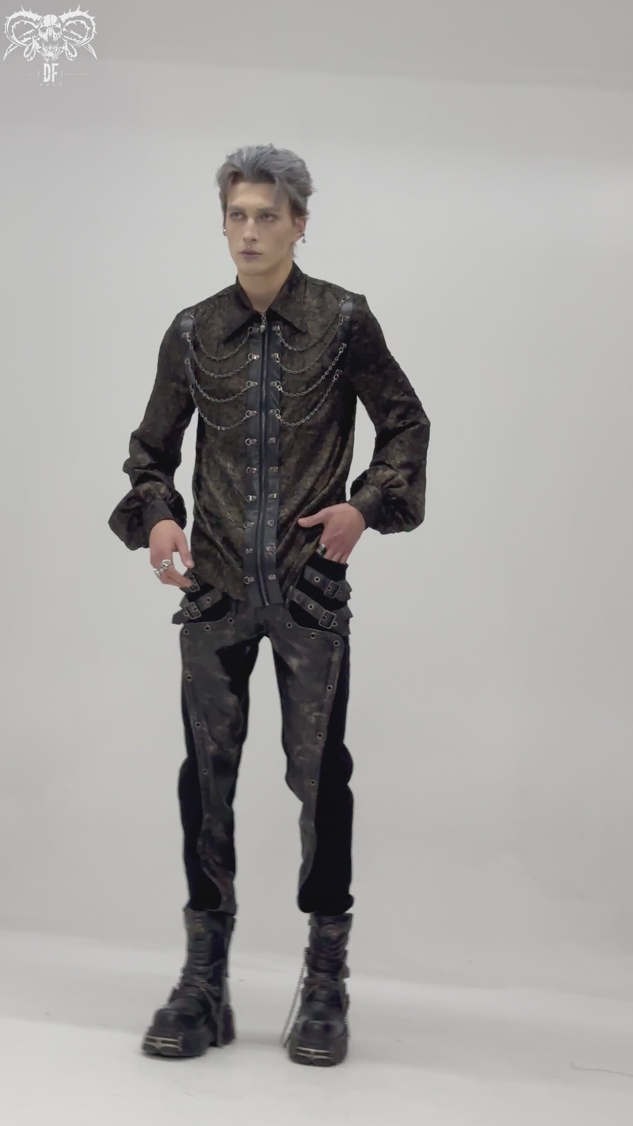 Step into the underground with these men's gothic techwear pants, featuring distressed faux leather panels, metal rivets, and side buckled straps. The fusion of industrial and cyberpunk aesthetics makes them perfect for alt fashion lovers. Slim fit with a bold edge, these pants are a must-have for festivals, gigs, and everyday rebellion. Style with boots for full effect.