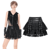 Turn heads in this gothic lace ruffle mini skirt featuring a high-rise waistband with double buckle straps. Layered lace and mesh ruffles create bold volume, while the smocked back panel flexes for an easy fit. Pair it with corsets, boots, or fishnets for punk, goth, and festival looks. Perfect for club nights and streetwear. Detachable straps frame the hips and add a harness edge to your outfit!!