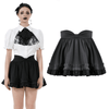 Añade encanto a tus conjuntos góticos o lolita con esta falda mini con volantes que presenta capas de satén, un lazo llamativo en el frente y detalles plisados por todo alrededor. La cintura elástica asegura un ajuste favorecedor mientras que el dobladillo de doble volante añade volumen y textura. Combina esta versátil falda negra con corsés, tops de encaje y botas para un look gótico o kawaii llamativo que funciona tanto de día como de noche.