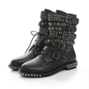 Si estás buscando botas de tobillo con remaches para motocicleta, entonces estas botas de mujer a la moda con punta redonda son especiales para ti. Las botas de cuero cuentan con remaches y hebillas de metal, tachuelas en la suela. Desde jeans hasta pantalones cortos, vestidos y faldas de cualquier longitud, estas botas de tobillo son una gran adición a cualquier look.