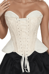 Corsé de Brocado Crema Elegante con Varillas de Acero y Encaje