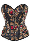 Este corsé Baylor Steampunk Overbust combina rosas victorianas románticas con elegancia steampunk. Diseñado en negro profundo con acentos rojos y dorados vivos, cuenta con 10 varillas espirales y 6 varillas de acero planas para un modelado definido. El cordón ajustable en la espalda y los broches frontales aseguran un ajuste perfecto. Ideal para moda gótica, cosplay o steampunk alternativa.