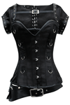 Este corsé overbust negro Alejandra fusiona la elegancia gótica con el encanto industrial. La elegante cubierta de satén presenta acentos de anillos en D de tono plateado y un cinturón utilitario desmontable para un look aventurero versátil. Construido con diez varillas de acero en espiral y cuatro planas, proporciona una silueta estructurada para cosplay o eventos temáticos. Un busk de metal en el frente y cordones traseros aseguran un ajuste seguro.