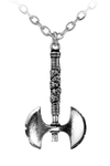 Herramienta de comercio y símbolo de fuerza, autoridad y poder de un señor de la guerra bárbaro. Este colgante de peltre atemporal captura la feroz esencia del hacha de doble filo, combinando un borde crudo y un significado histórico. Ideal para los amantes de la estética guerrera, añade una declaración audaz a cualquier atuendo con artesanía auténtica y un fuerte significado simbólico.