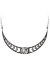 Canaliza el poder de lo divino con el Collar Sacerdotisa de Ishtar. Esta pieza llamativa en forma de luna creciente muestra todas las fases lunares, centrada por un gran cristal austriaco y adornada con detalles celestiales. Elaborado en peltre inglés envejecido, este colgante inspirado en la diosa habla de amor, fertilidad y fuerza cósmica.
