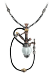 Un llamativo collar steampunk inspirado en la innovación victoriana. Este diseño intrincado representa el Holmes-Baker Patent Kinetic Nargile, una invención de 1877 imaginada como un narguile térmicamente amplificado por un intelectual londinense. Elaborado con un acabado bicolor, detalles ornamentados y acentos de cadena, es una pieza audaz para los amantes de la moda gótica y steampunk.