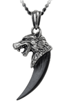 Colgante Wolf Macht Esculpido con Colmillo de Peltre Negro
