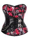 Corsé Overbust Alternativo con Estampado de Calaveras y Rosas y Cordones Traseros