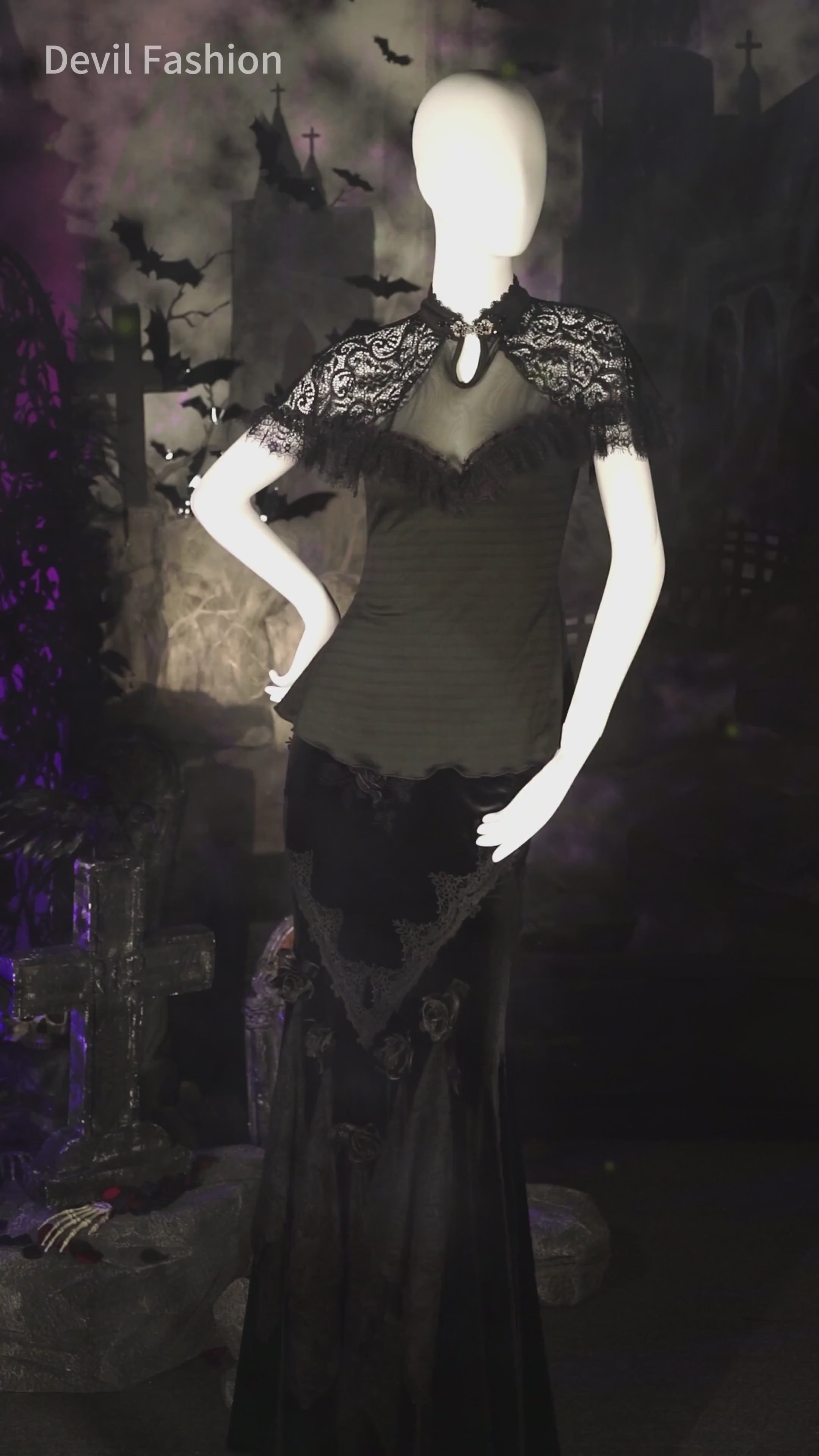Echa un vistazo a nuestro elegante modelo de falda larga para mujeres en estilo gótico. Esta falda larga negra tiene un corte vintage que definitivamente te encantará. También está hecha de tela de encaje que añadirá gracia a tu apariencia. Así que elige tu talla y ordena esta falda larga negra para tu guardarropa.