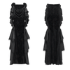 Entrez dans l'élégance sombre avec cette jupe longue gothique en velours, confectionnée à partir d'un mélange de velours élastique, brodé et de polyester. Le design ajusté présente des volants en cascade, une délicate bordure en dentelle et des détails de chaînes drapées avec des pendentifs en croix. Une fente haute sur le côté ajoute de l'attrait, tandis que les accents floraux aux épaules rehaussent la silhouette dramatique. Parfait pour la mode gothique, les tenues de soirée et les événements alternatifs.