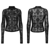 Haut Brodé à Flockage Croisé - Haut en Résille Gothique Rétro