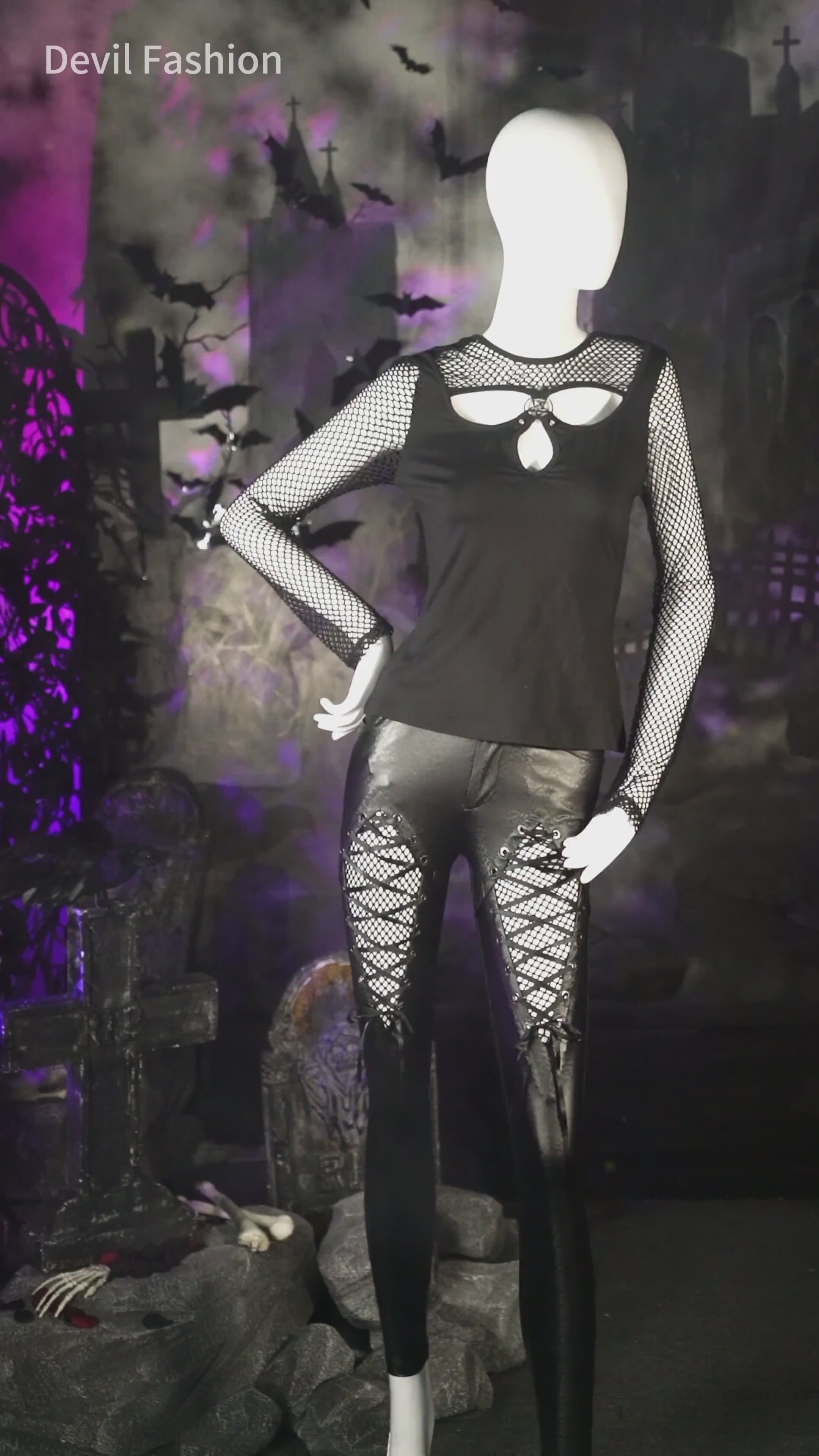 Jetez un œil à notre nouveau modèle de pantalons pour femmes au style gothique. Ce pantalon est fabriqué en cuir PU, ce qui vous satisfera certainement par sa qualité. Ils disposent également d'empiècements en mesh et d'un laçage sur le devant qui attireront votre attention. Avec ce pantalon, vous pourrez créer de nombreuses tenues gothiques.