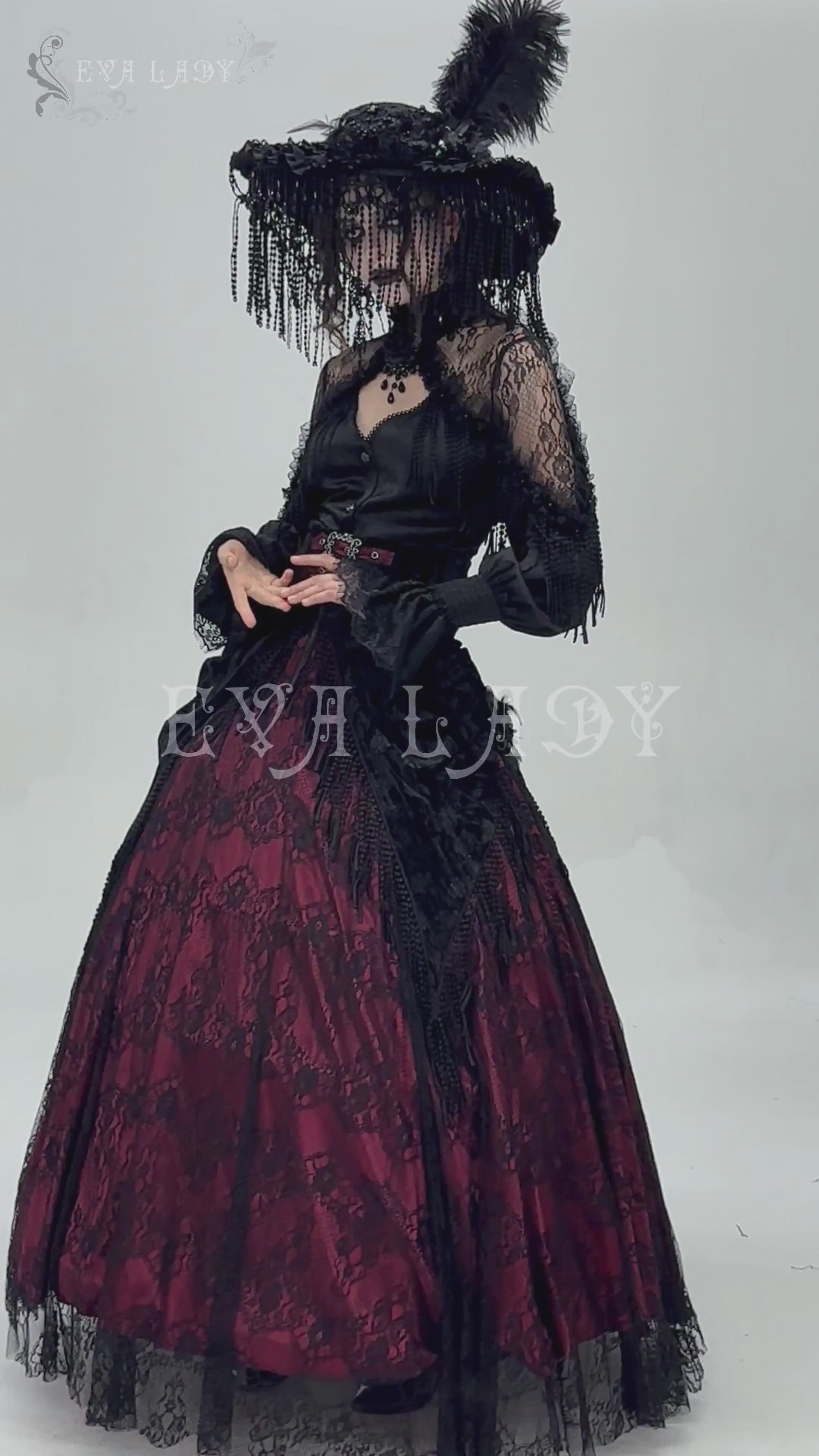Entrez dans le charme du style gothique victorien avec ce chemisier en dentelle complexe. Doté d'une silhouette ajustée, de détails à pampilles perlées et d'un col montant avec des accents floraux, ce haut respire la sophistication. Le dos lacé façon corset améliore l'ajustement et l'élégance, tandis que les manches bouffantes avec poignets en dentelle ajoutent une touche dramatique. Parfait pour des ensembles gothiques, steampunk ou cosplay, c'est une pièce maîtresse pour toute garde-robe.