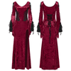 Confectionnée en velours de diamant de haute qualité, cette robe gothique dégage un luxe naturel avec sa teinte riche. Dotée d'un dos à lacets flatteur et de manches à volants style cour, elle offre un mélange raffiné d'élégance et de style audacieux. L'appliqué exquis autour de la taille met en valeur le rapport parfait entre la taille et les hanches, tandis que la fente haute sexy ajoute une touche audacieuse. Parfaite pour les amateurs de mode alternative et gothique.