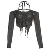 Haut gris à manches longues et épaules ouvertes pour femmes - Vêtement sexy et décontracté.